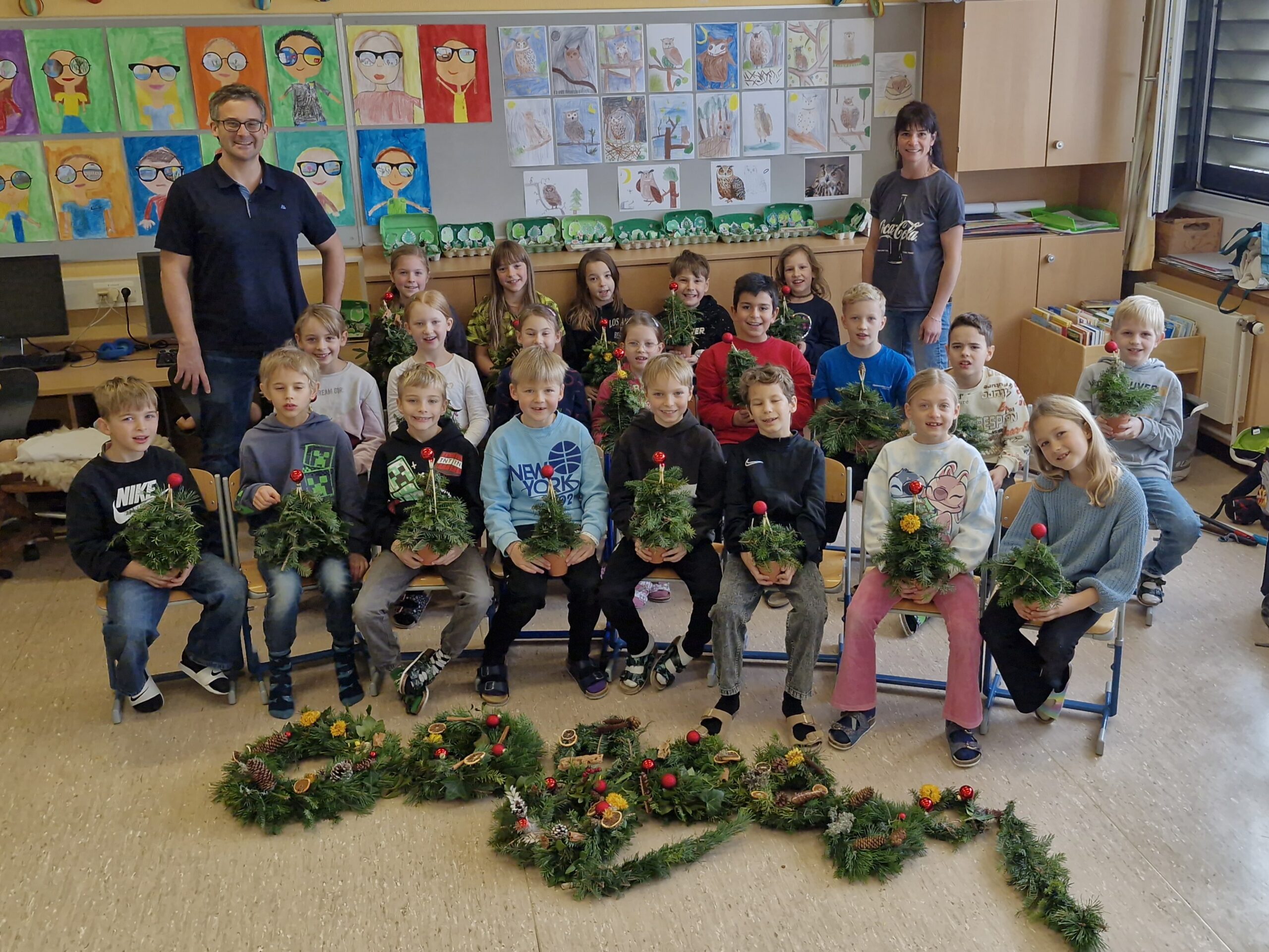 Die dritten Klassen haben sich heuer sehr intensiv auf die Weihnachtszeit vorbereitet. Rechtzeitig zu Adventbeginn haben uns Tatjana Leitner und Simon Moser tatkräftig beim Binden und Gestalten von Adventkränzen und Weihnachtsgestecken unterstützt. Danke an die Zeit und das Know-how, das sie an die Kinder weitergeben haben.